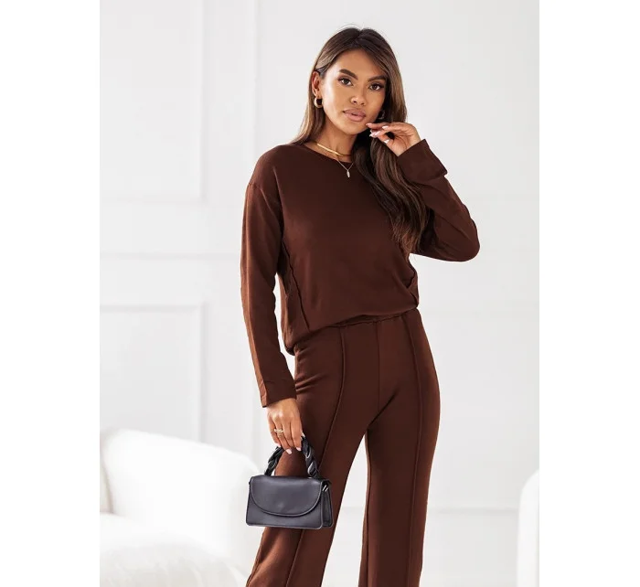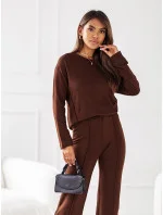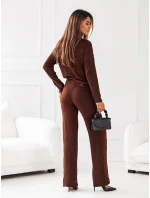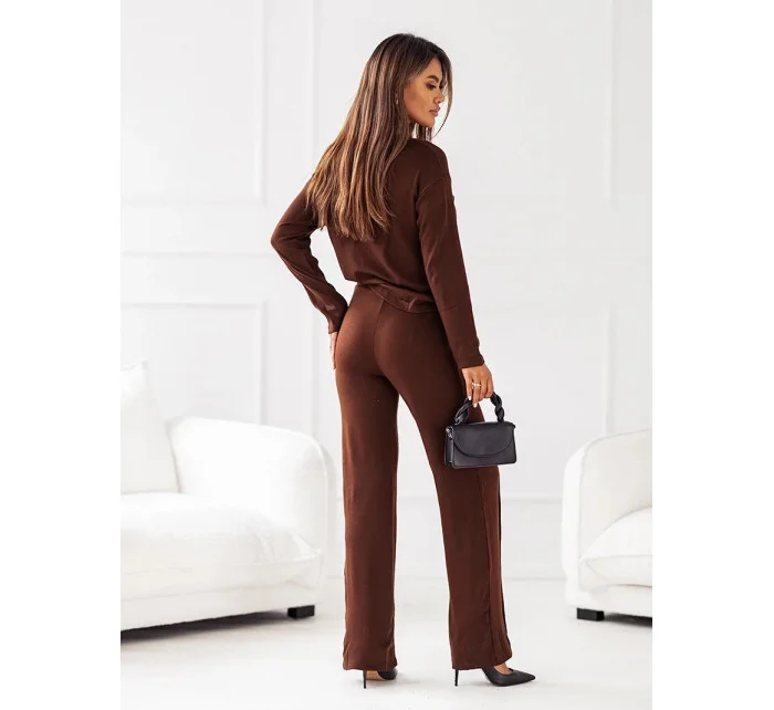 Dvojdielny pletený komplet v čokoládovej farbe - blúzka a nohavice (VE74)
