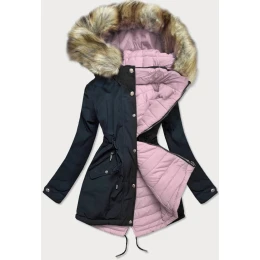 Tmavomodrá a ružová obojstranná dámska zimná bunda s kapucňou (w211)