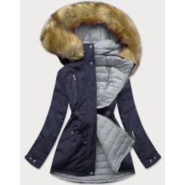 Tmavomodro-šedá obojstranná dámska zimná bunda s kapucňou (w213)