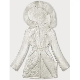 Dámska obojstranná prešívaná bunda - kožušina ecru (H-897-11)