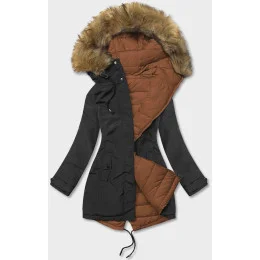 Čierno-karamelová obojstranná dámska zimná bunda (2M-21508)