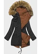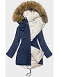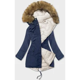 Dámska obojstranná zimná bunda tmavomodrá a béžová (2M-21508)