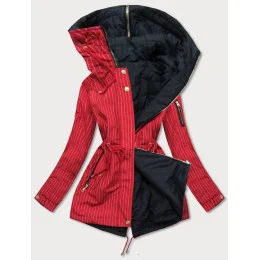 Červeno-čierna obojstranná pruhovaná bunda s kapucňou (W659)