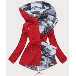 Obojstranná červená-moro dámska bunda parka s kapucňou (XW665X)