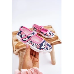 Dziecięce Baleriny W Kwiatuszki Granatowo-Różowe Noah