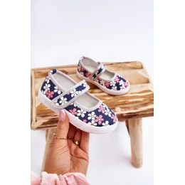 Dziecięce Baleriny W Kwiatuszki Granatowo-Szare Noah