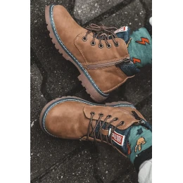 Świetne botki w stylu traperów sprawdzą się podczas jesiennych, chłodnych dni! Posiadają ocieplenie w postaci koca obuwniczego. Osadzone na płaskim obcasie i platformie z antypoślizgową podeszwą. Dodatkowo zostały obszyte nicią. Model z klasycznym sznurowaniem oraz suwakiem z boku cholewki. Botki zostały wykonane z eko skóry oraz tkaniny. Przy wyborze rozmiaru prosimy kierować tabelą rozmiarów.