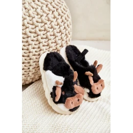 Dziecięce Futrzane Kapcie Z Motywem Krowy Czarne Tamorrin