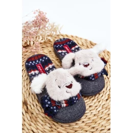 Dziecięce Kapcie Na Grubej Podeszwie z Misiem Szare Dasca