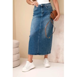 Klasická midi džínsová sukňa M.Sara ME388 je ideálnou voľbou pre ženy, ktoré si cenia jednoduchosť, pohodlie a nadčasový štýl. Vysoký pás krásne zvýrazňuje pás a midi dĺžka dodáva celku eleganciu a jemnosť.