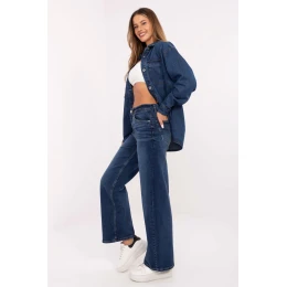 Dámske džínsy so širokým strihom nohavíc sú ideálnym dizajnom na každodenný, ležérny štýl. Sú vyrobené z bavlny s prídavkom elastanu, čo zaručuje pohodlie a voľnosť pohybu. Model s vysokým pásom krásne zvýrazňuje pás a široké nohavice dodávajú siluete moderný, uvoľnený charakter. Hladká džínsovina a klasické zapínanie na zips a gombík podčiarkujú univerzálny štýl nohavíc. Praktické vrecká vpredu a otvorené vrecká vzadu dotvárajú celkový dojem. Sú ideálne k tričku aj elegantnej košeli.