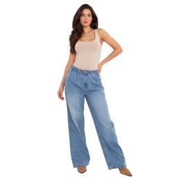 Dámske džínsy mom fit z kvalitnej bavlny, ktorá poskytuje pohodlie a voľnosť pohybu každý deň. Model s pravidelným pásom a širokými nohavicami, ideálny na každodenné štylizovanie. Jemné záhyby na prednej strane, ktoré dodávajú ľahkosť strihu a zdôrazňujú ženský charakter nohavíc. Zapínanie na zips a gombík. Majú praktické, vsadené bočné vrecká a otvorené vrecká v zadnej časti. Hladký džínsový materiál uľahčuje zladenie džínsov s rôznymi príležitosťami, od každodenných výletov až po neformálnejšie stretnutia s priateľmi.