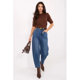 Tyto dámské džíny ve stylu balloon fit jsou ideální kombinací pohodlí, stylu a ženského šarmu. Vyrobené z vysoce kvalitní směsi bavlny, elastanu, polyesteru a viskózy jsou měkké, elastické a dokonale se přizpůsobí postavě, zajistí pohodlí po celý den. Model s vysokým pasem krásně zdůrazňuje pas a charakteristický střih balloon fit, volnější v bocích a se zužujícími nohavicemi, dodává outfitu moderní a uvolněný vzhled. Kalhoty mají zapínání na zip a knoflík, kapsy vpředu a otevřené kapsy vzadu, což je činí praktickými a pohodlnými k nošení. Další výhodou je zapínací pás s ozdobnou stuhou, která outfitu dodává ženský a stylový touch. Je to ideální volba pro každodenní, casualové outfity, skvěle se hodí jak k tričku, tak k elegantní košili nebo svetru.