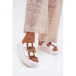 Eko Kožené Sandály Dámské Na Platformě S Přezkami Bílé model 21699634 - Boto
