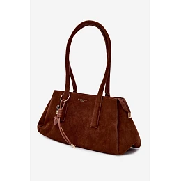 Kabelka vyrobená z imitace semiše je stylový a funkční doplněk, který se skvěle hodí na každý den. Model je zapínán na zip, což zajišťuje bezpečnost uložených věcí. Kabelka má tři přihrádky, které usnadňují organizaci, a další kapsy umožňují pohodlné uložení drobností. Má pohodlné držadla na nošení v ruce a celkový vzhled doplňuje ozdobný přívěsek, který jí dodává šarm a podtrhuje ženský styl. Ideální volba pro ženy, které ocení funkčnost, eleganci a módní vzhled. Rozměry: šířka - 34 cm, výška - 17 cm, tloušťka - 13 cm.