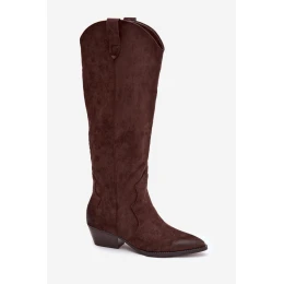 Eko Semišové Kozačky Dámské Na Podpatku Čokoládové Jenaya