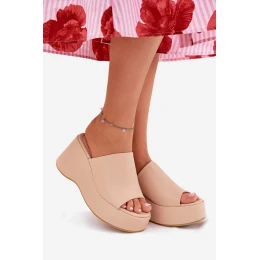 Stylové pantofle vyrobené z eko kůže. Uloženy na platformě a klínu, poskytují stabilitu a komfort po celý den, zároveň opticky prodlužují nohy a zvýrazňují siluetu. Měkká stélka zajišťuje příjemné nošení, poskytuje odpovídající amortizaci a pohodlí při chůzi. Tyto pantofle se skvěle hodí do každodenních stylizací, ideální k letním šatům, sukním nebo kalhotám. Při výběru velikosti se řiďte tabulkou velikostí.