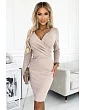 398-4 Elegantné bavlnené šaty s obálkovým výstrihom a dlhými rukávmi - FUXY
