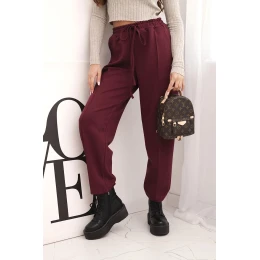 Elegantné nohavice s vysokým pásom a viazaním v páse vo vínovej farbe