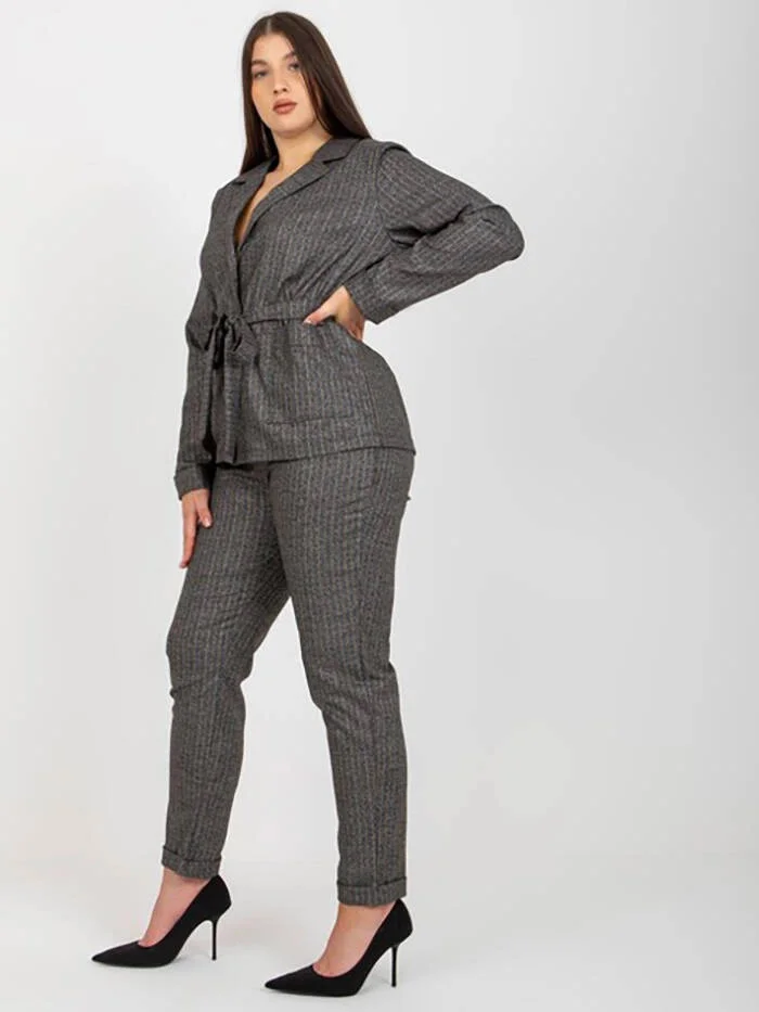Elegantné sivé sako s opaskom na zaväzovanie (507758)