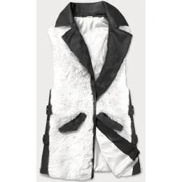 Elegantná čierno-biela vesta z ekokože a kožušiny (BR9592-2601)