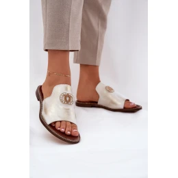 Elegantní Dámské Kožené Pantofle S Dekorací Zlatý model 21686276 - Zazoo