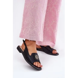 Elegantní Dámské Sandály Na Plochém Podpatku S Dekorací model 21696667 Černé - S.Barski