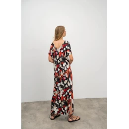 Elegantní dlouhé vzorované dámské šaty s výstřihem do V a krátkým rukávem, vše co žena v parných letních dnech potřebuje. Šaty jsou vyrobené z kvalitní jersey viskózy s příměsí elastanu. Jersey Viscoza se vyznačuje vysokou savostí, je dobře prodyšná, měkká a příjemná na dotek a elastan zaručuje lepší pružnost tkaniny.