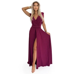 Pridanie recenzie k Elegantní dlouhé dámské šaty ve vínové bordó barvě s brokátem a se zavazováním model 20173914 - numoco