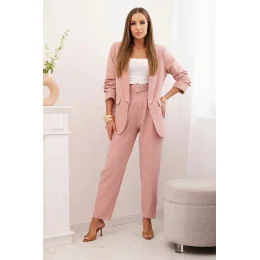 Elegantná súprava saka a nohavíc v púdrovo ružovej farbe