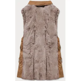 Elegantní vesta v barvě z eko kůže a kožešiny model 15831737 - S'WEST