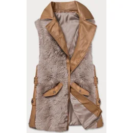 Elegantná vesta z karamelovo-béžovej ekokože a kožušiny (BR9592-48022)