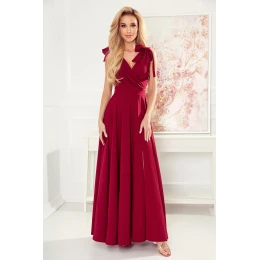 ELENA - Dlhé dámske šaty vo vínovej bordovej farbe s výstrihom a zaväzovaním na ramenách 405-1