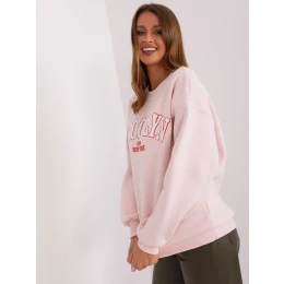 Svetloružová nadrozmerná mikina s nápisom.