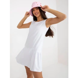 Biele základné mini šaty bez rukávov s volánom.