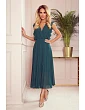 Spodná časť modelu má módnu 7/8 dĺžku. Model sa zapína vzadu skrytým zipsom. Tieto šaty značky Numoco sú poľským výrobkom a sú k dostaniu v Chrpová farbe.
