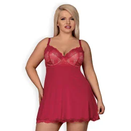 Košilka Rosalyne babydoll Obsessive - v barvě červeného vína - vyztužená krajková podprsenka speciálně pro velké poprsí - nastavitelné pásky - pohodlí při nošení - zapínání ve třech krocích - přizpůsobí se každému tvaru těla - jemný, krajkový povrch lemu - příjemné a elastické materiály Multistretch