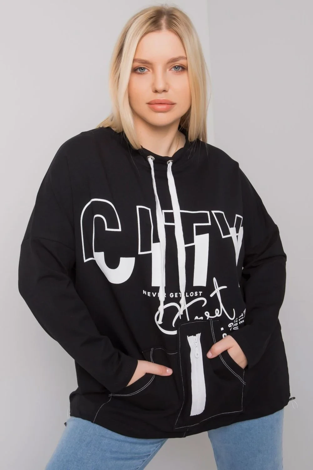 Čierna plus size mikina s potlačou a vreckami.bavlna 90%Elastan 10%