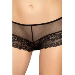 Erotické nohavičky Ellba ROZA - čierna farba - predná časť z priehľadného tylu - zadná časť z krajkovej aplikácie