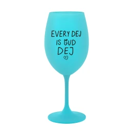 EVERY DEJ IS GUD DEJ - tyrkysová sklenice na víno 350 ml