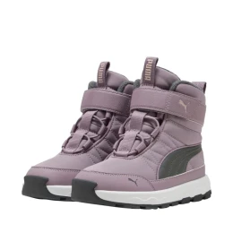 Dětské boty Puma Evolve Boot AC+ PS purple 392645 09 Puma se budou dobře hodit během zimních měsíců. Vysoký límec. Systém rychlého šněrování zakončený páskem na suchý zip. Svršek ze syntetiky/textilu. Měkká syntetická ovčí kůže obepíná chodidla a pomáhá je udržet v teple. Stélka SoftFoam+. Zadní část a jazyk se smyčkou. Mezipodešev. Gumová podešev.