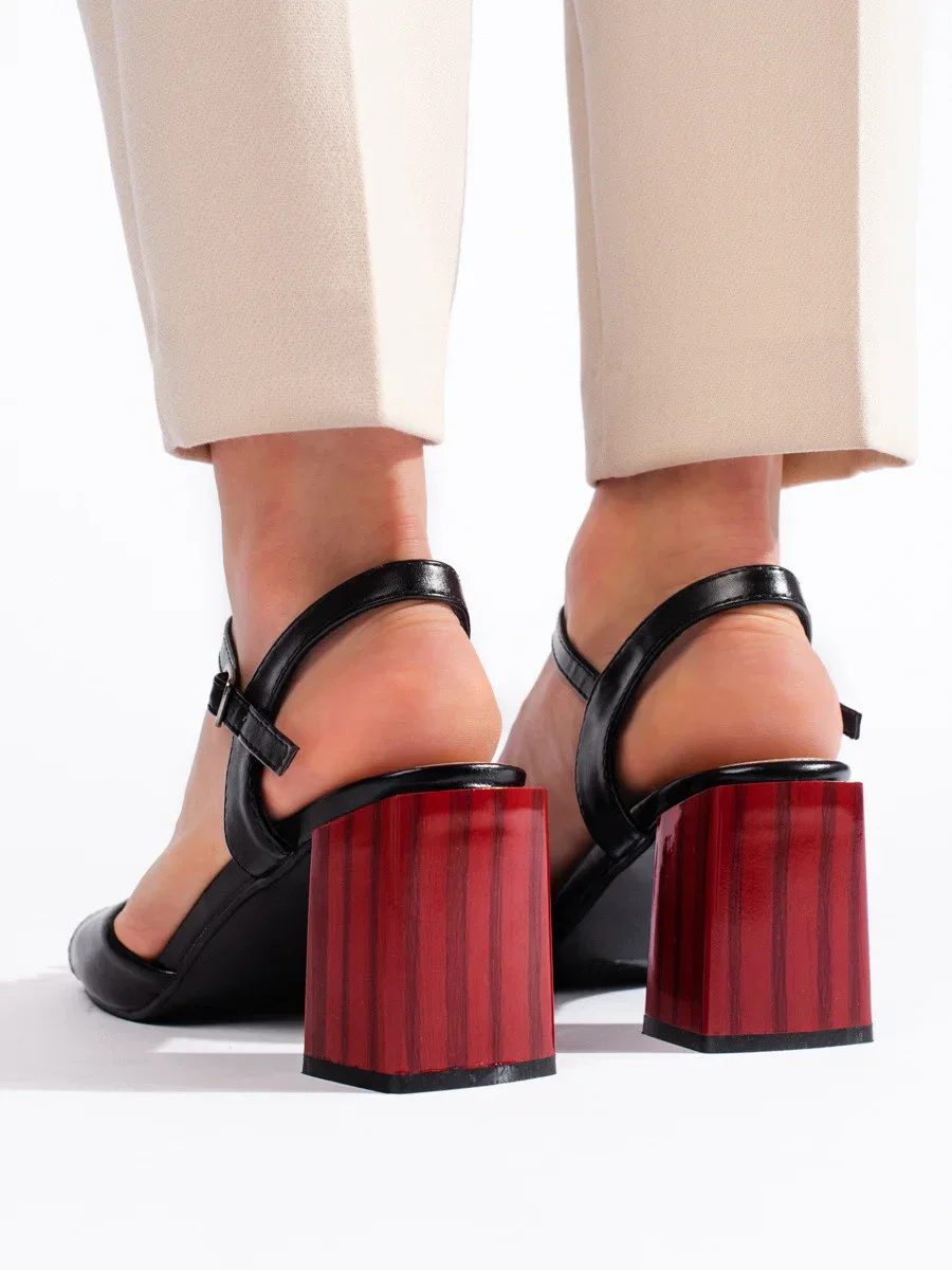 Exkluzívne dámske čierne sandále na širokom podpätku