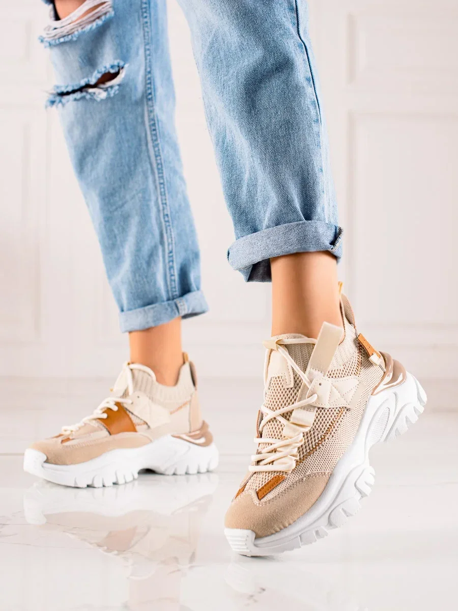 Exkluzívne dámske hnedé tenisky bez podpätku