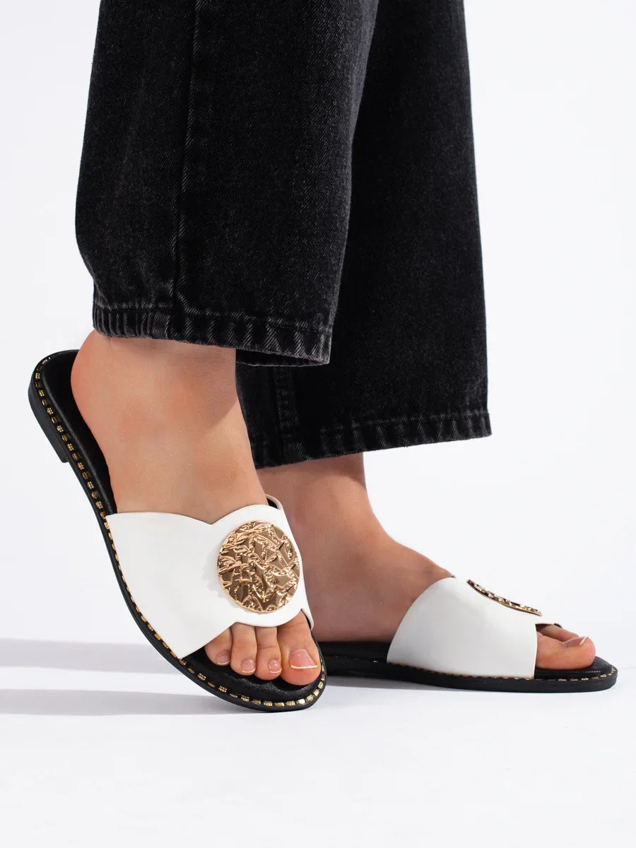 Exkluzívní dámské nazouváky bílé bez podpatku