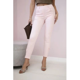 Farebné džínsové nohavice s mašľou púdrovo ružové
