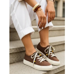 Dámske tenisky s ozdobnými korálkami cappuccino FashionStreet ZY1404
