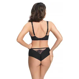 Zmyselná, veľmi elegantná podprsenka, ktorá vám poskytne krásny, ženský vzhľad a zároveň plné pohodlie. Predná časť je vyrobená z kombinácie jemného tylu, elastického úpletu a neuveriteľne krásnej kvetinovej čipky, ktorá zdobí prednú časť spodnej bielizne v podobe ornamentu. Zadná časť elegantne zvýrazňuje zadoček. 90 % polyamid, 7 % elastan, 3 % polyester.