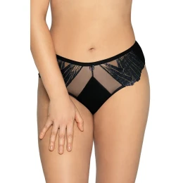 Boky modelu pokrýva tyl s neobyčajnou výšivkou. Nohavičky zdobia opalizujúce ozdobné koliesko v strede modelu.