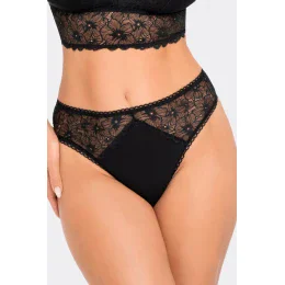 Dámske bavlnené nohavičky s vysokým pásom a čipkovaným lemom.