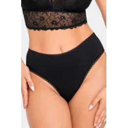 Dámske bavlnené nohavičky s vysokým pásom a výraznou čipkou na zadnej strane.